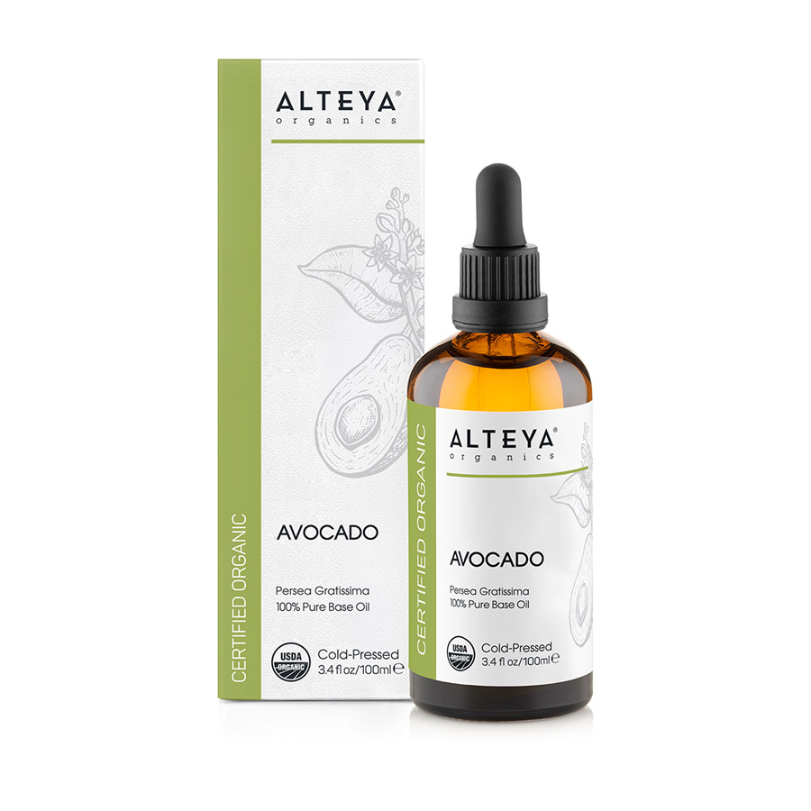 Organický avokádový olej sa získava z plodu avokádovej hrušky, lisovaním za studena. Má zelenú farbu a nazýva sa tiež "olejom krásy". Patrí medzi 10 najzdravších olejov na svete. Je bohatý na vitamíny, minerály a omega mastné kyseliny, ktoré majú silný vplyv na zdravie pokožky, vlasov a nechtov a odďaľujú známky predčasného starnutia. Podporuje zlepšenie kvality vlasov, upokojuje podráždenú a šupinatú pokožku hlavy a regeneruje lámavé a poškodené vlasy. Odporúča sa tiež na zmiernenie svrbenia a na zmäkčenie stvrdnutých miest na pätách, lakťoch a dlaniach. Pre jeho blahodarné účinky na telo, pokožku, vlasy a nechty je neodmysliteľnou súčasťou mnohých kozmetických prípravkov. Je považovaný za prirodzený ochranný UV faktor, chráni pleť pred stratami hydratácie a vytvára prirodzene regeneračnú masku na podráždenú a vysušenú pokožku.