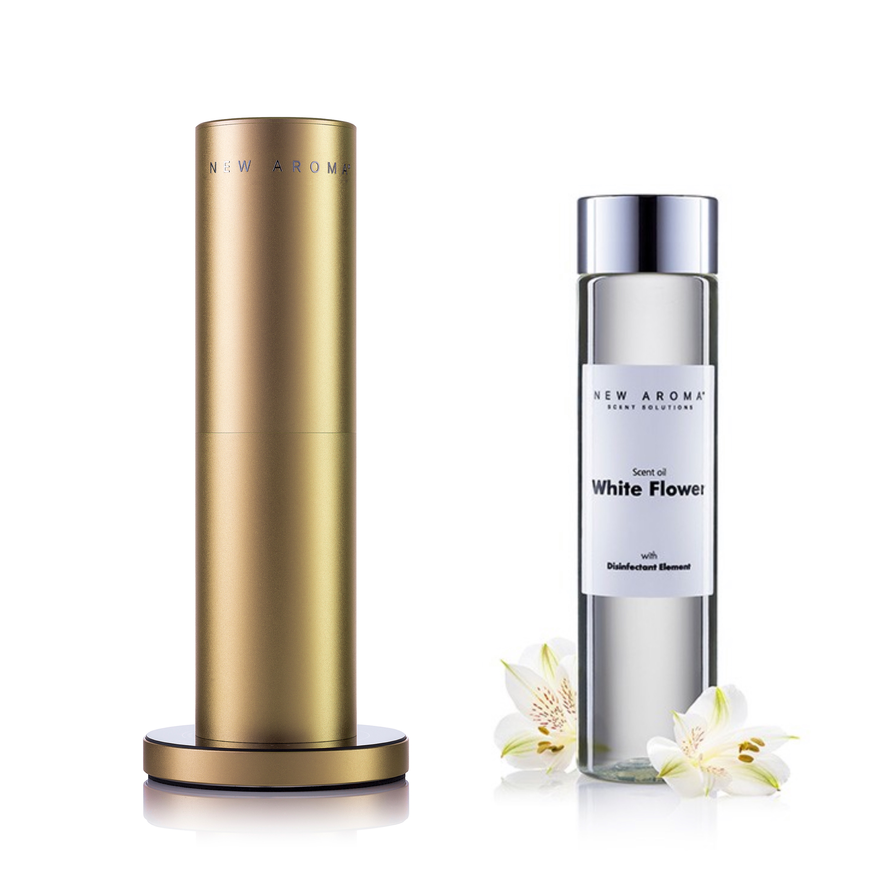 New Aroma (AlfaPureo) difuzér Tower gold + 200 ml White Flower – dezinfekčný aroma olej