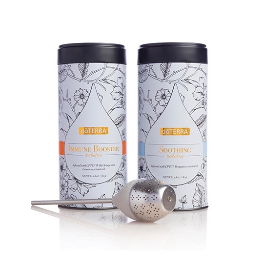 Tieto jedinečné zmesi sypaných bylinkových čajov obsahujú kvôli pridaným účinkom vybrané esenciálne oleje. Sada obsahuje zmesi sypaných čajov Citrus Fusion a Herbal Fusion od doTERRA, dve dekoratívne nádoby na čaj a sitko na lúhovanie čaju.
