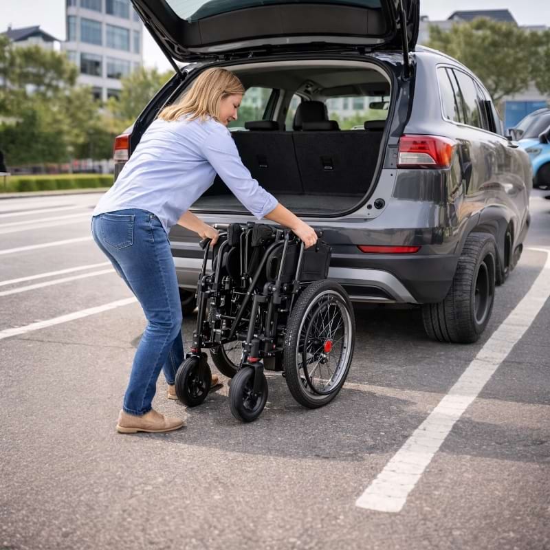 Vďaka skladacej konštrukcii je možné vozík jednoducho naložiť do auta – odporúčame manipuláciu jednou alebo dvoma osobami.