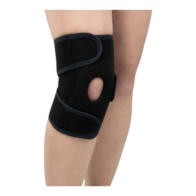 ortézu a uvoľňuje patelu. - Otvorená konštrukcia a tri obvodové popruhy so suchým zipsom umožňujú pohodlie pri nasadzovaní a vyzliekaní, ako aj presné prispôsobenie pre používateľa.