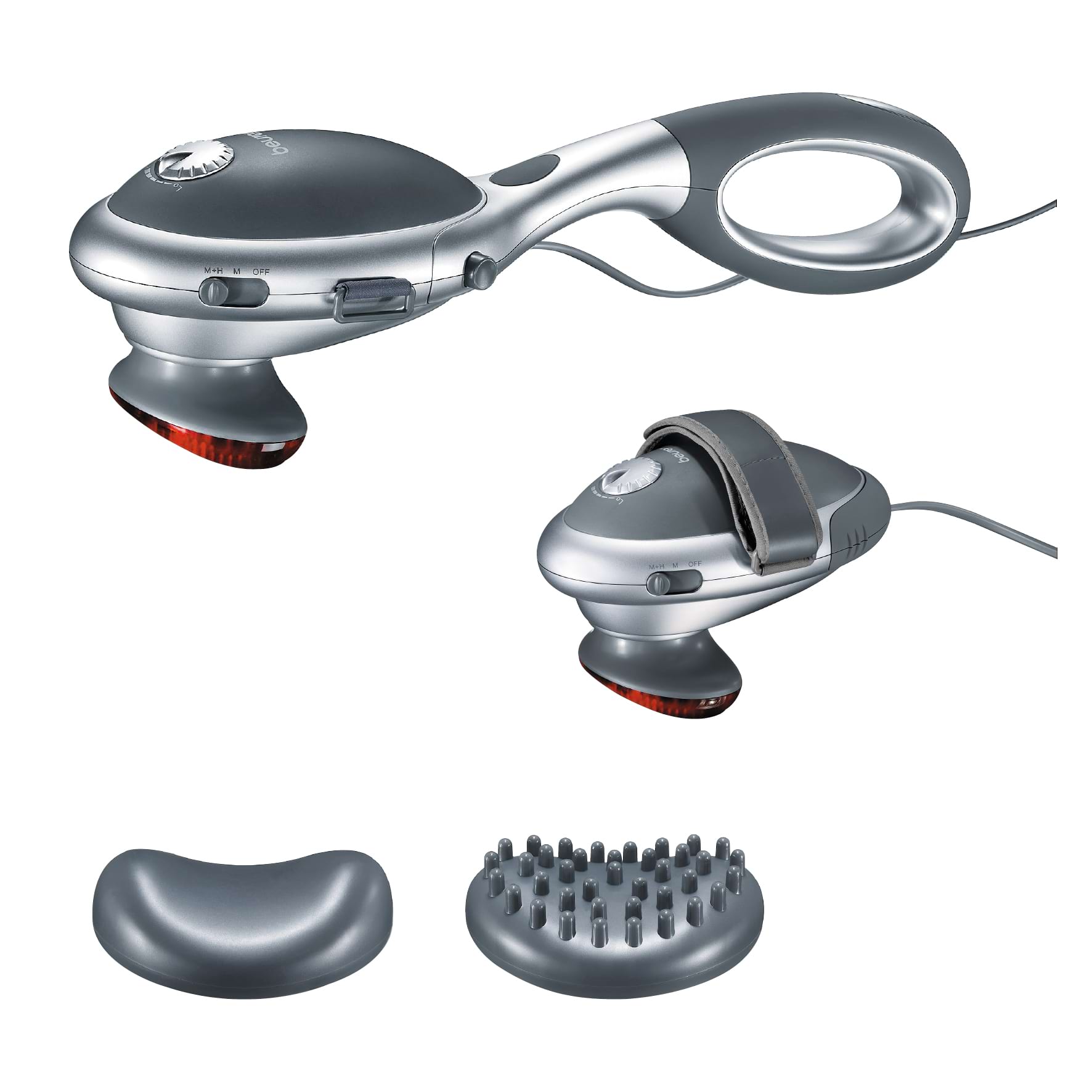 Masážny prístroj Beurer MG70 vám sprostredkuje ukľudňujúcu a relaxačnú infračervenú poklepovú masáž. Môžete ju vykonávať s nasadenou rukoväťou, alebo použiť prístroj samostatne so slučkou na ruku. Pre sňatie rukoväte stačí pevne stlačiť obe zaisťovacie tlačidlá a vytiahnuť rukoväť z masážne hlavy. Pre zakrytie upevňovacieho otvoru rukoväte sa s prístrojom dodáva zásuvná krytka. Masáž môžete vykonávať s nasadeným masážnym nástavcom alebo bez neho. Bez nadstavca je prístroj vhodný pre infračervenú masáž