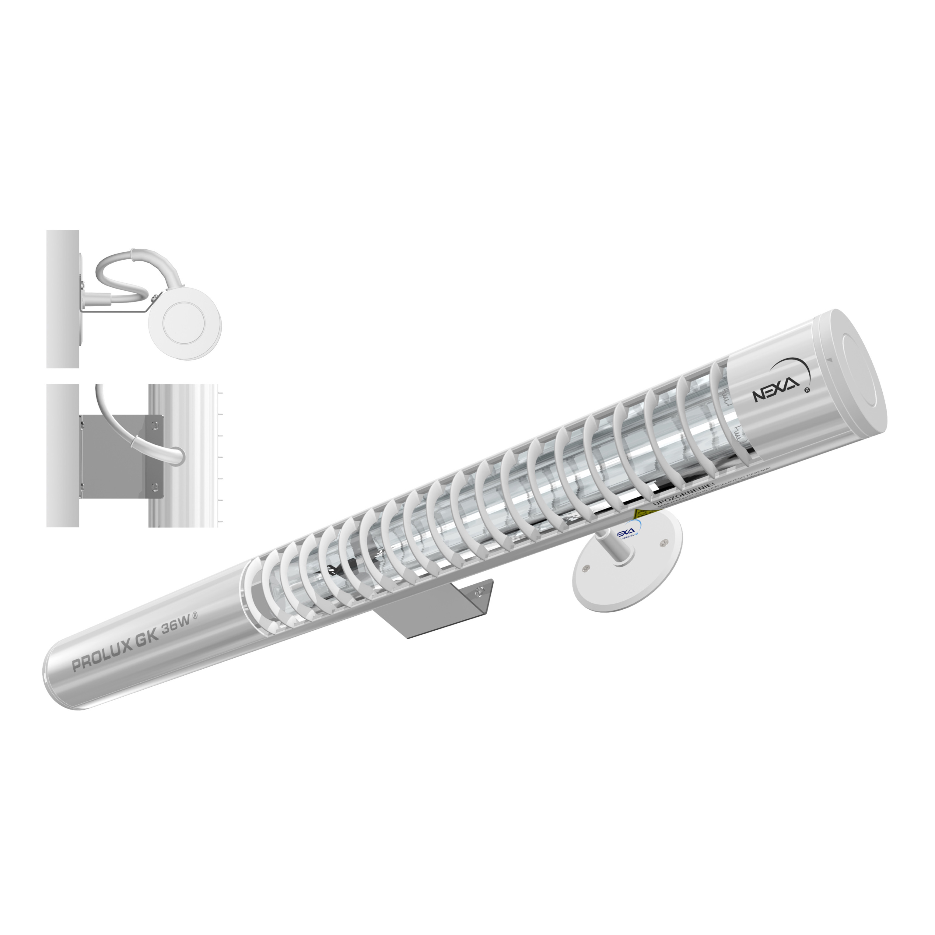 Montáž germicídneho žiariča nie je zahrnutá v cene. Germicídny žiarič sa nedodáva s káblom.
