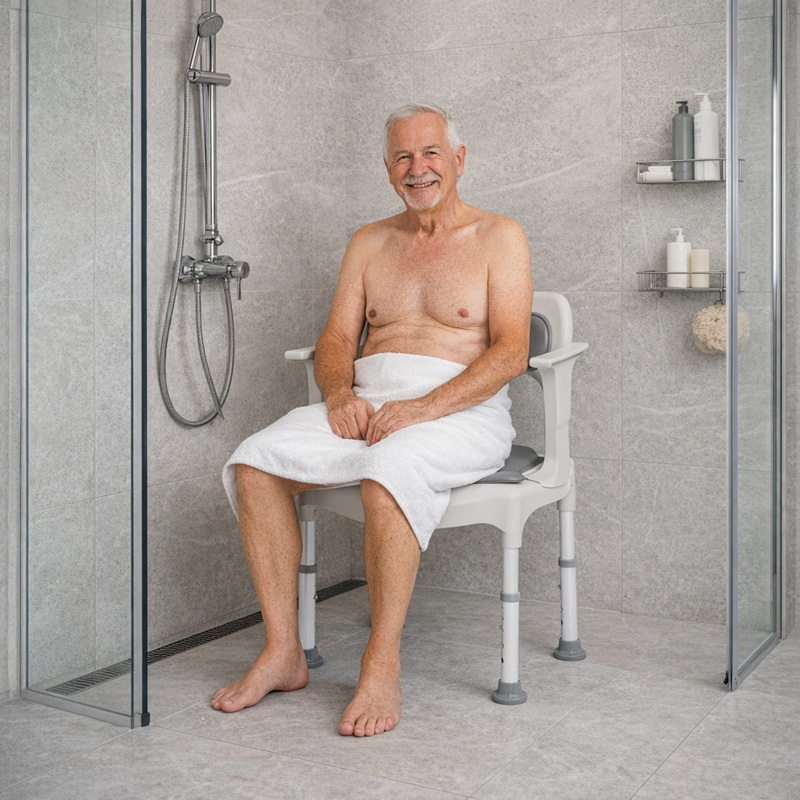 Materiály odolné voči vlhkosti, ergonomický tvar a stabilita robia z kresla spoľahlivého pomocníka pri sprchovaní aj kúpaní – v sprchovom kúte aj vo vani.