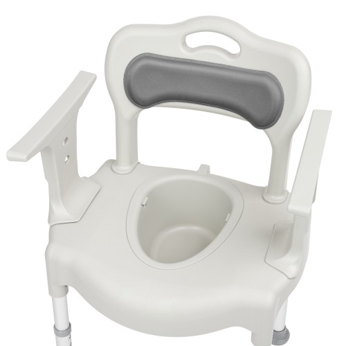 Pod sedadlom sa nachádza ľahko vysúvateľná sanitárna nádoba s vekom – ideálne riešenie, keď nie je možné použiť klasickú toaletu. Jednoduché vyberanie znamená rýchlu údržbu a hygienu bez námahy.