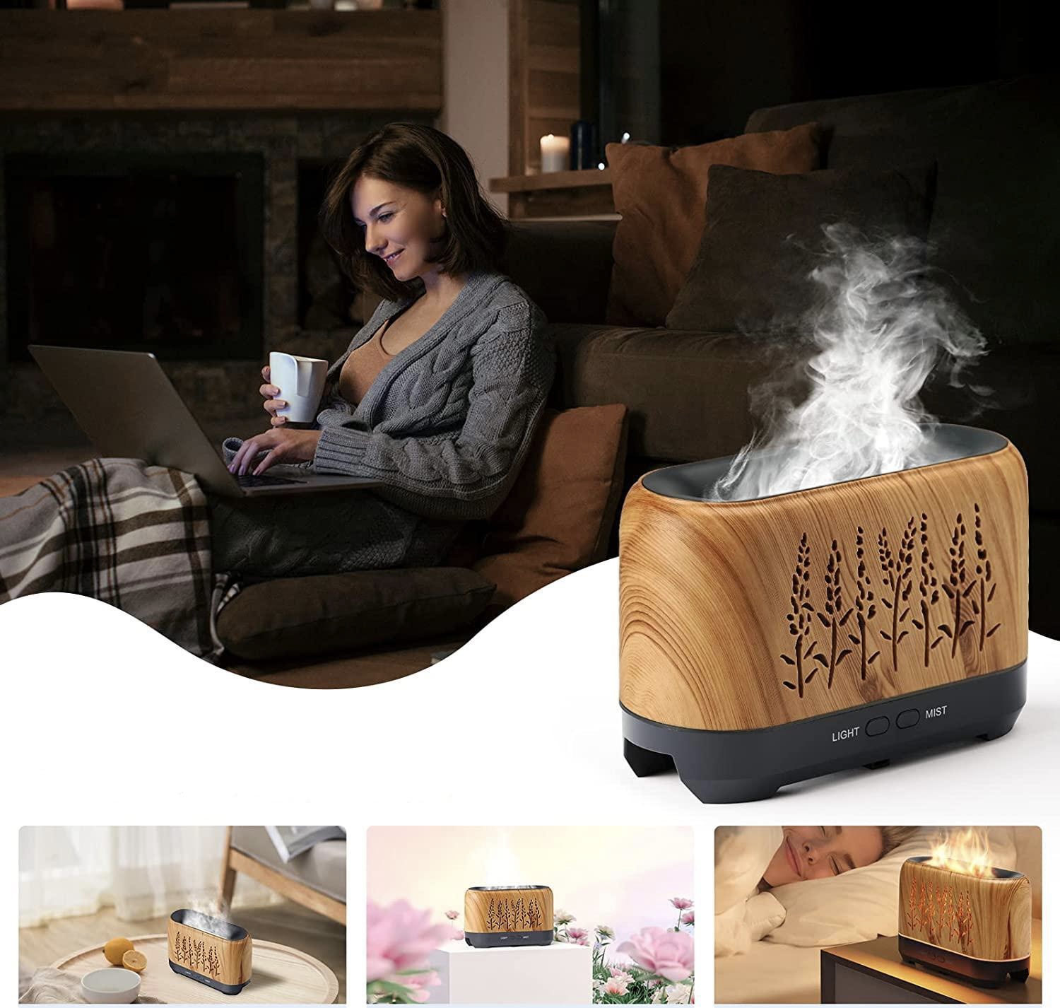 - Pracovné režimy: Rozptyľovač plameňa so 7 druhmi svetiel a 3 druhmi atomizačného režimu, respektíve silný/slabý/prerušovaný, je možné voľne prepínať. 4 režimy časovania, v tomto poradí fungujúce difúzia ON/30s/2h/4h, aby vyhovovali rôznorodým potrebám. Difuzér má nádrž na vodu s objemom 240 ml, plnenie vodou je možné nepretržite používať viac ako 12 hodín, veľmi pohodlné. Prostredníctvom svetla a hmly v kombinácii s LED svetlami vytvára realistický plameňový efekt na vytvorenie teplej a romantickej atmosféry.