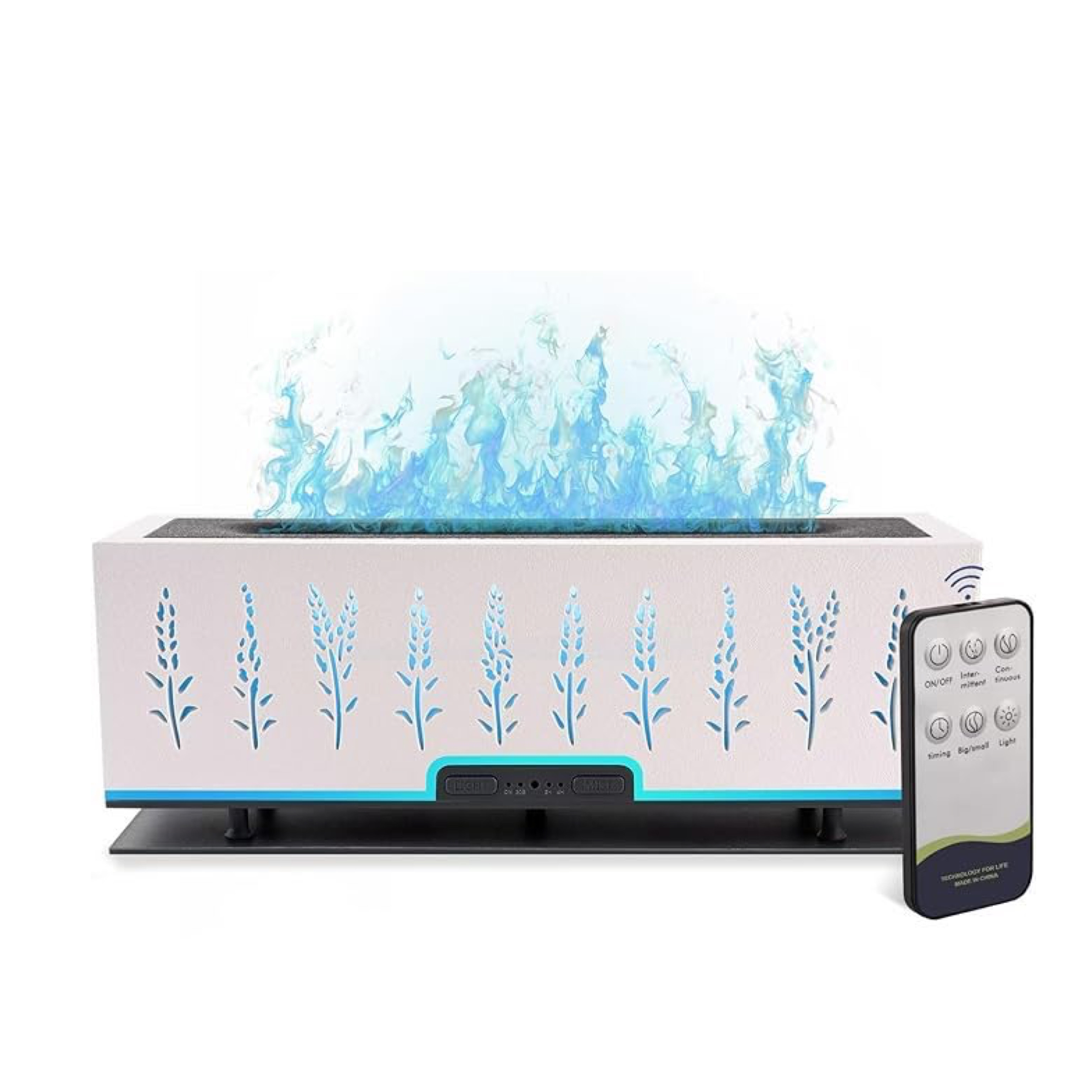 - 4 režimy nastavenia času: Difuzér má 4 režimy nastavenia času: 30 sekúnd, 2 hodiny, 4 hodiny a nepretržite. A máte na výber 2 možnosti hmly, silnú a štandardnú hmlu. Difuzér obsahuje 2 rôzne farby plameňa, čo je ideálne pre ultrazvukovú aromaterapiu, zbiera svetlo a hmlu a vytvára realistický efekt plameňa.